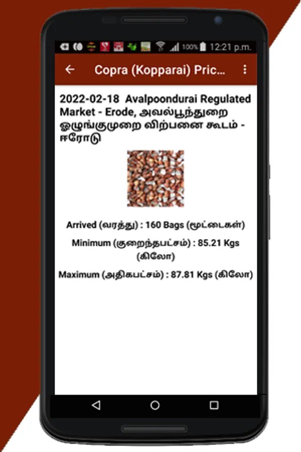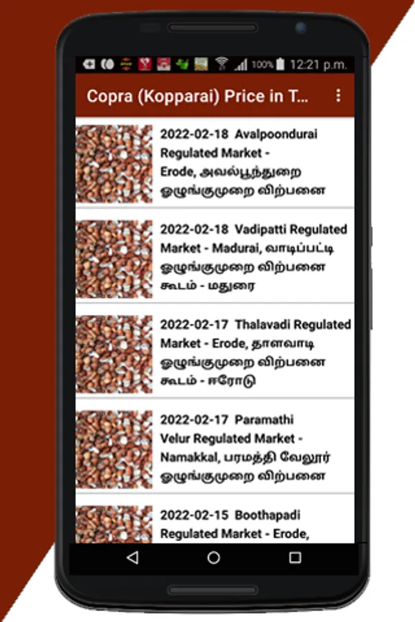This app provide Daily Copra (Kopparai) price of Tamilnadu Major cities
