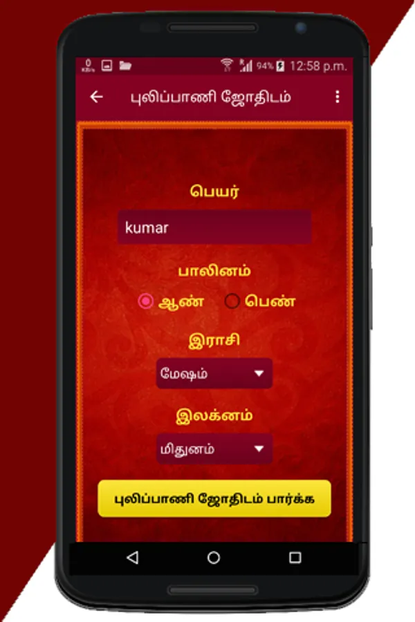 Just Enter Your Name and Select your rasi,Laknam, See your Pulippani Jothidam.