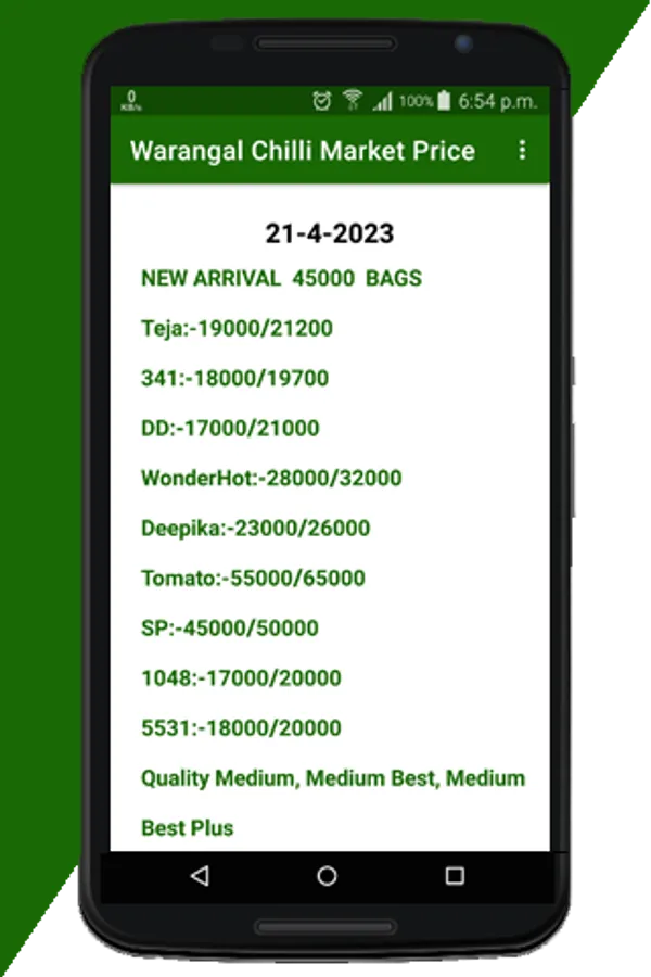 This app provide the Daily Warangal Chilli Market Price.