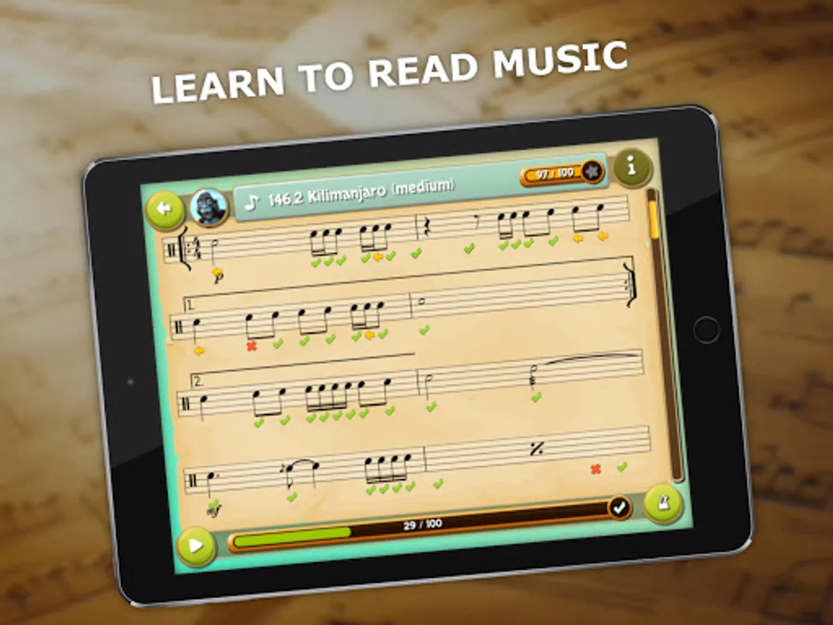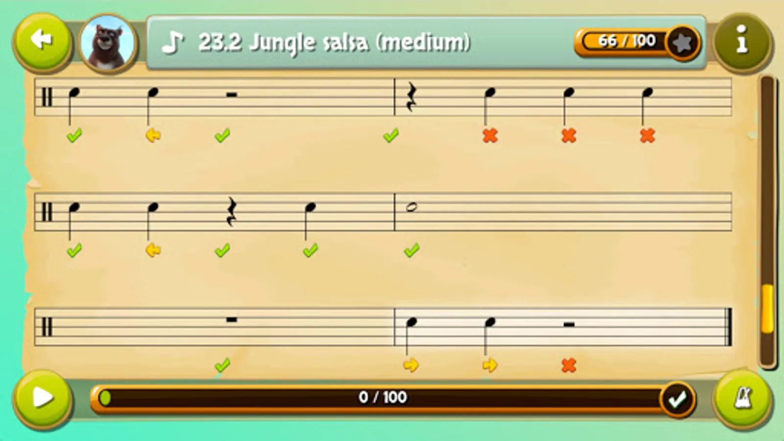 The Trommelsafari app is your perfect tool for practicing. It listens to your playing and provides real-time feedback on your accuracy and timing. Game elements provide more motivation and success while practicing. The educational structure is based on the popular drum book "Trommelsafari Snare Drum Level 1".