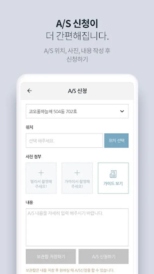 Provides services such as home visit reservation, household defect reception through mobile app.