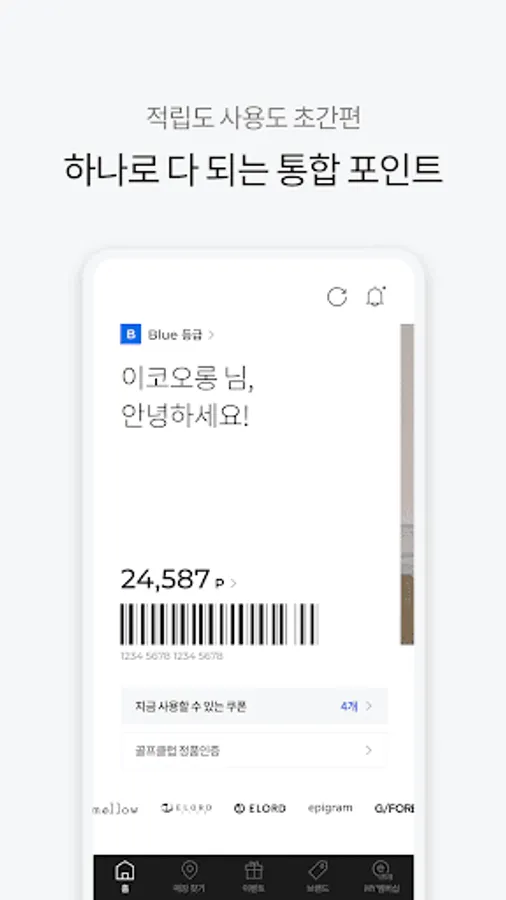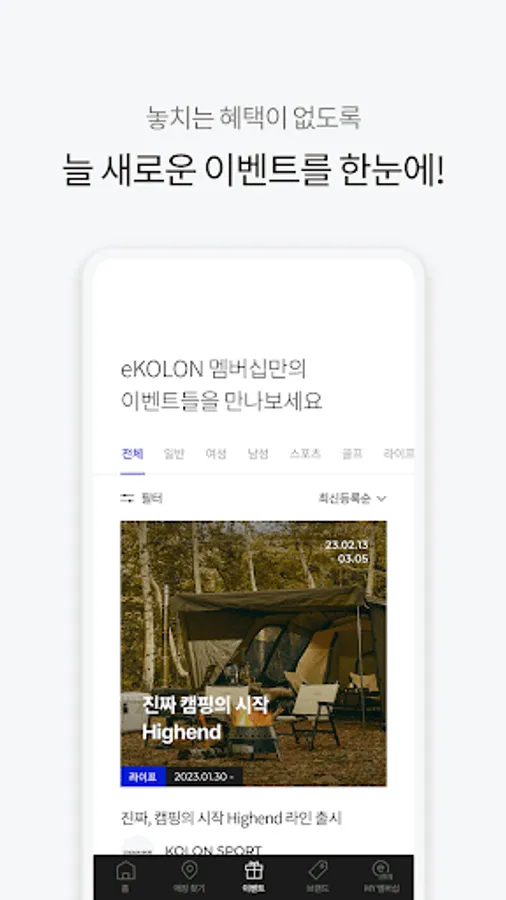 eKOLON Membership is a membership service that allows you to use points and other benefits anywhere in Kolon FnC's brands, both online and offline.