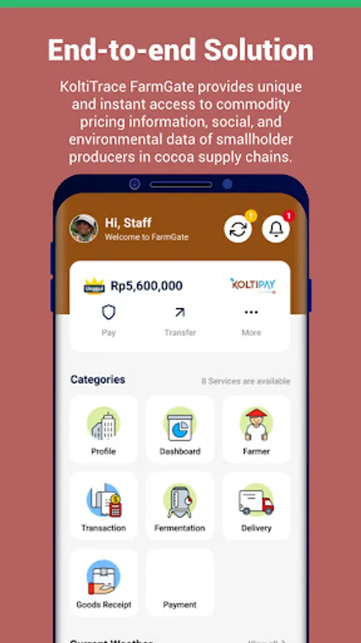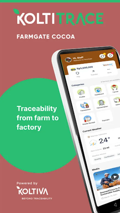 KoltiTrace FarmGate Cocoa is a web and mobile-based platform application that can be adapted to the business requirements of organizations and businesses along the cocoa and chocolate value chain. The applications combine up-and-down-stream product traceability, sustainability project management, and resource planning in one single end-to-end platform ecosystem.