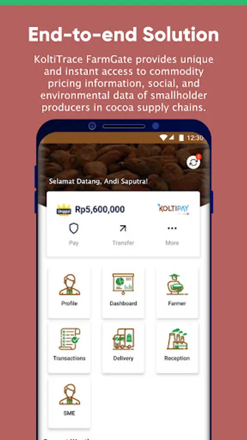 KoltiTrace FarmGate Cocoa is a web and mobile-based application that can be adapted to business requirements of organizations and businesses along the cocoa and chocolate value chain. The applications combine up-and-down-stream product traceability, sustainability project management, and resource planning in one end-to-end platform ecosystem.