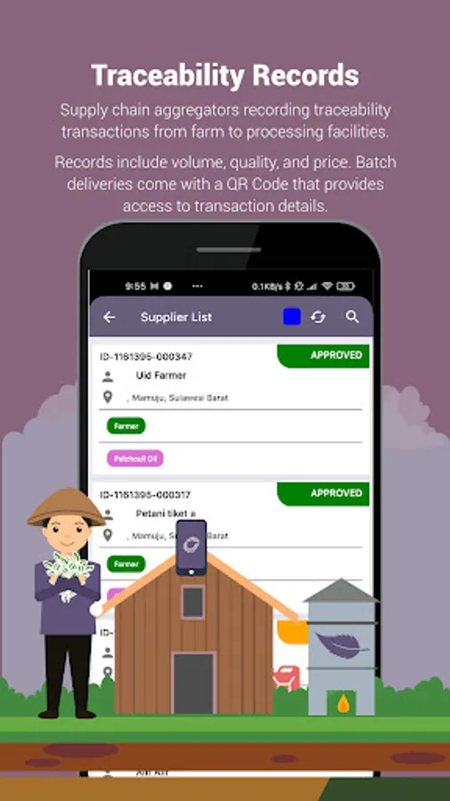 The FarmXtension application is developed for Field Agents and Agriculture Extension Staff to establish and verify digital profiles for suppliers and map production plots. The surveys are customized for the I-Source ORIGINATION requirements for sustainable sourcing.