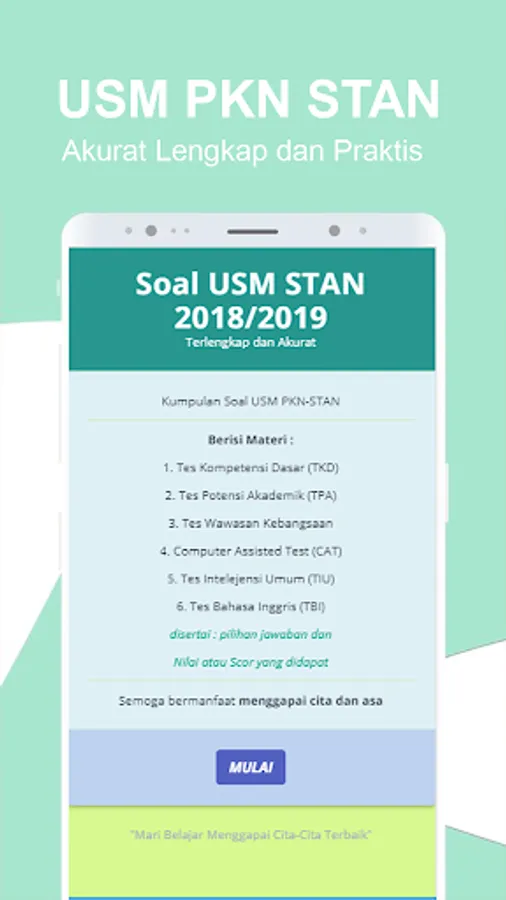 The USM PKN STAN 2022 Question - Complete and Accurate is a summary of the 2017 PKN STAN USM Question and the first application of the PKN STAN USM Question based on online simulation. This application provides a real experience of how the real USM PKN STAN simulation is. This application was compiled by the PKN STAN Alumni Guidance Team who has experience in publishing books, compiling a preparatory tutoring curriculum for USM PKN STAN, filling seminars on USM PKN STAN, and is also active in teaching activities. The USM STAN application is an interactive application that contains a collection of last year's STAN questions to study for the USM booth test. Collection of USM STAN Questions for 2006, 2007, 2008, 2009, 2010, 2011, 2013, 2014, 2015, 2016, 2017, 2018, 2019, 2020, 2021 and 2022