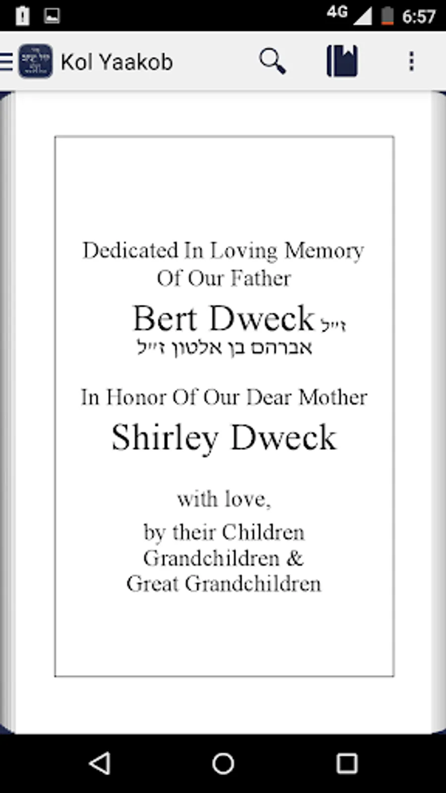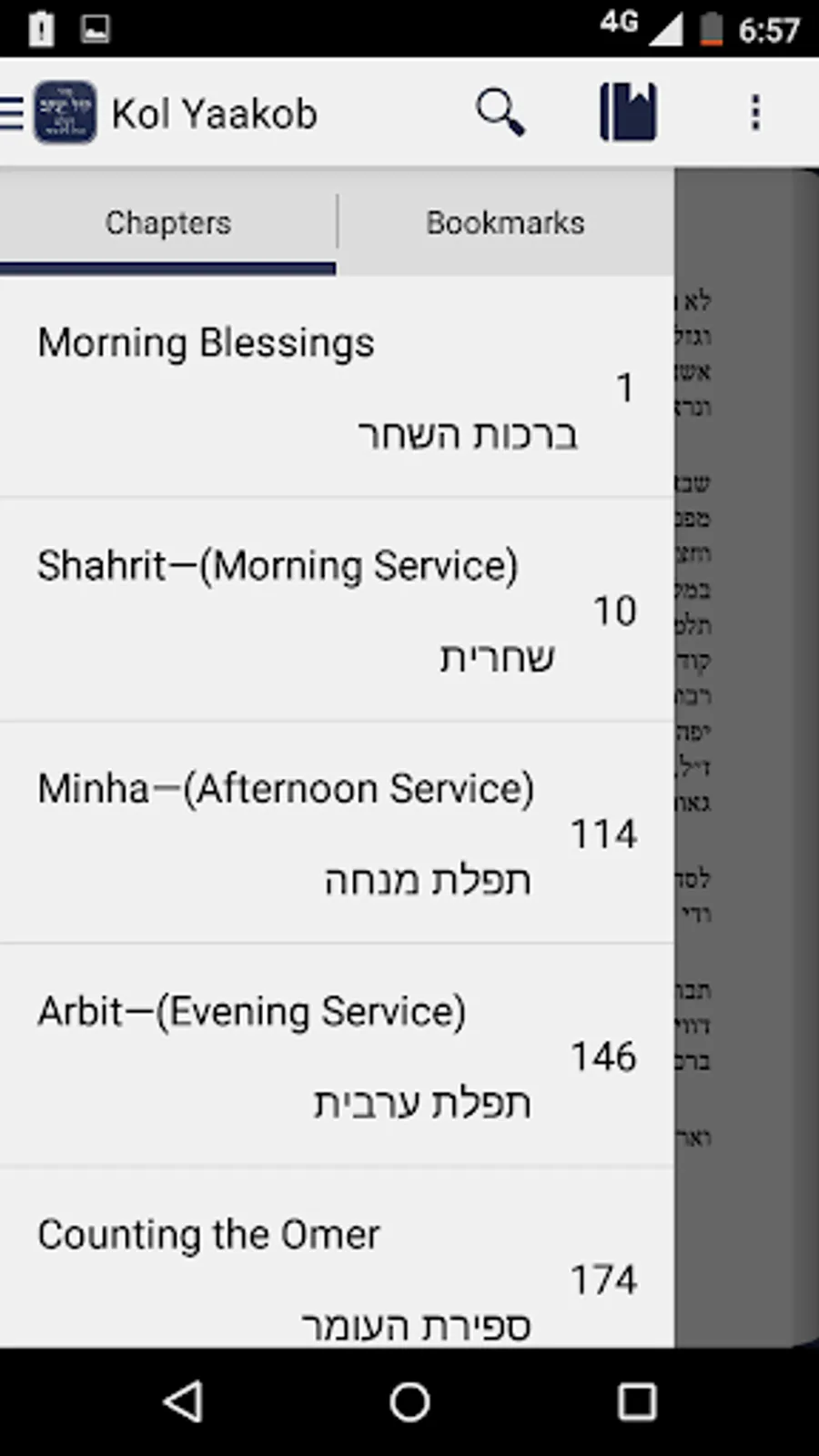 The Kol Yaakob Siddur App features a full Table of Contents and is complete with all prayers for the entire year including prayers for Weekdays, Holidays, Marriage Ceremony as well as many other Special Occasions and Various Blessings.