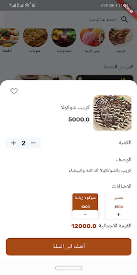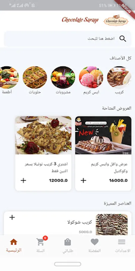 The application offers the customer the ability to browse the products and categories in the restaurant, such as sweets and meals