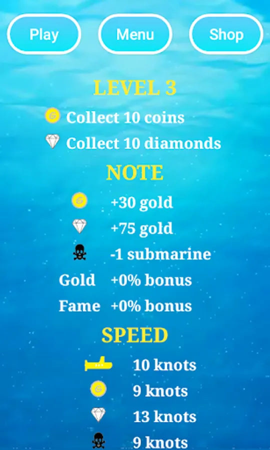 - Try to avoid skulls, bombs and torpedoes.
