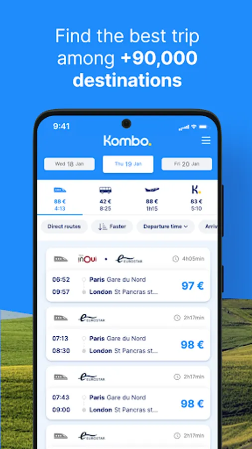 Kombo offers all modes of transport (train, bus, plane, carpooling), combines tickets from hundreds of companies, and also offers the best results according to the customer's profile.
