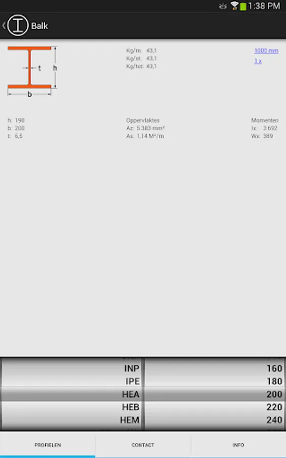 With the steel App Komdex.nl you have access to the most important data of DIN steel profiles, such as dimensions, weights and resistance moments moments of inertia. The App also calculates the weights based on the user selected profile and imported lengths and quantities. In addition to profiles, you can also determine the weight of sheet metal.
