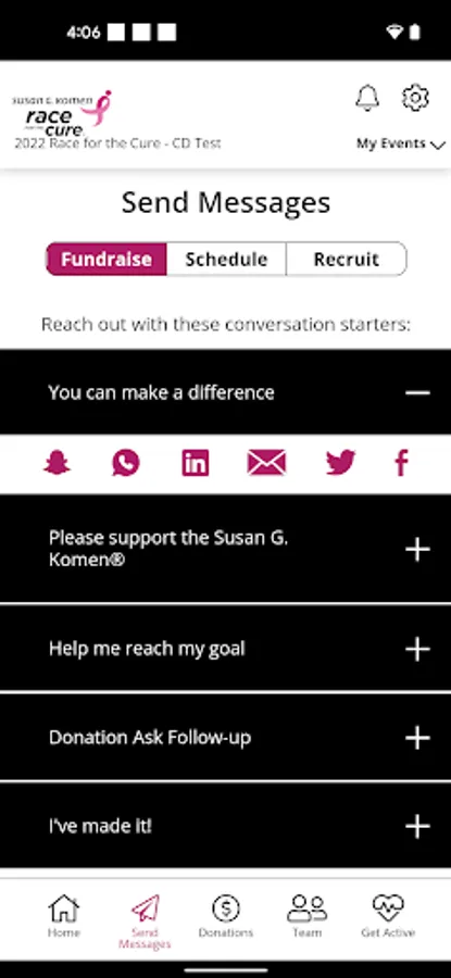 Do your fundraising on the go with your Susan G. Komen Race for the Cure® application. Update your personal fundraising page, send emails, check your progress, and connect to Google Fit to track your physical activity – all from the palm of your hand. Susan G. Komen Race for the Cure® application is a great tool to track your fundraising progress, and to keep current on all Race news!