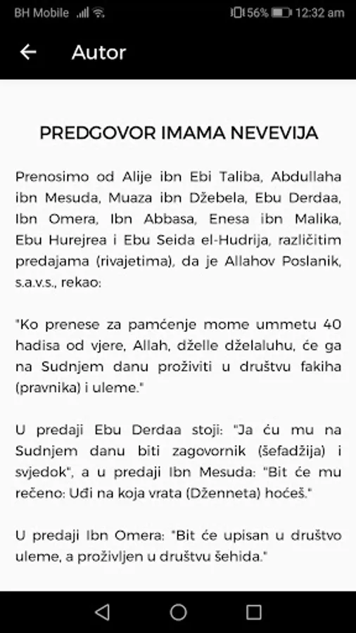 The hadiths and commentary were extracted from the book "Nevevi's Commentary on 40 Hadiths" taken from the website of the Islamic Community of Bosnia and Herzegovina.