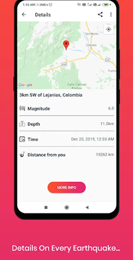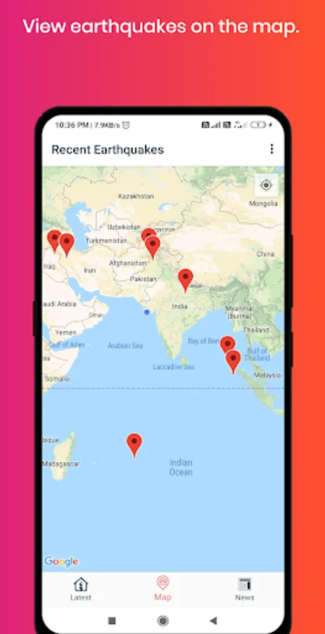 ● Map: You can view the earthquakes on the map and observe the location where it has happened.