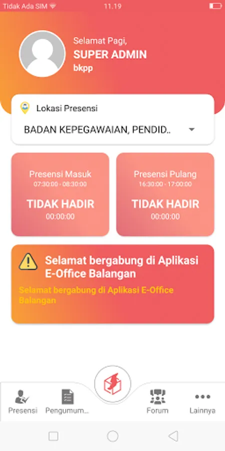 Menu Absensi Harian Maupun Event dengan Data Kepegawaian