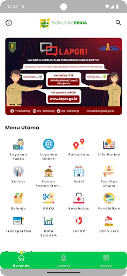 TabalongPedia is an application provided by the Tabalong Regency Government with the aim of publishing information and documentation about public services and development in the Tabalong Regency area, and contains system applications used by the Tabalong Regency Government and other institutions in implementing the Electronic Based Government System (SPBE) and programs "Tabalong Smart City". Apart from that, this is a form of manifestation of public information openness carried out by the Tabalong Regency Government.