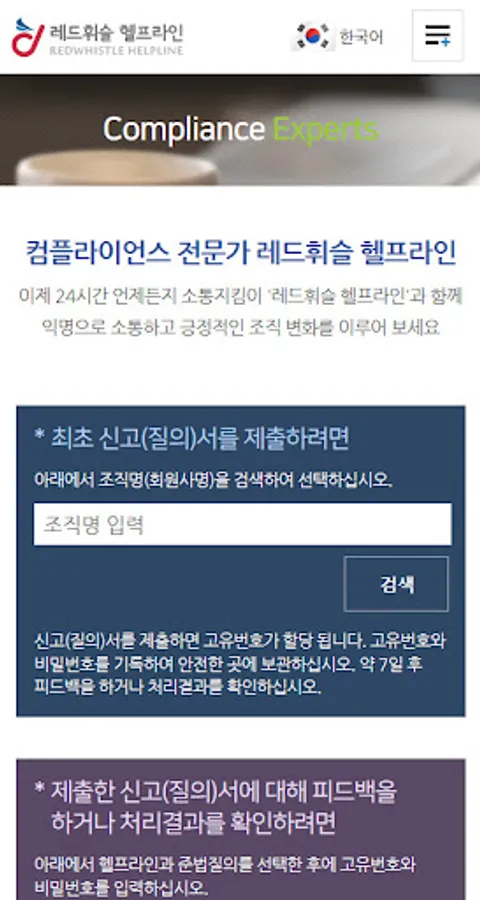- About 500,000 employees of 150 major financial institutions, large corporations, central administrative agencies, local governments, and public corporations in Korea use the Red Whistle Helpline.