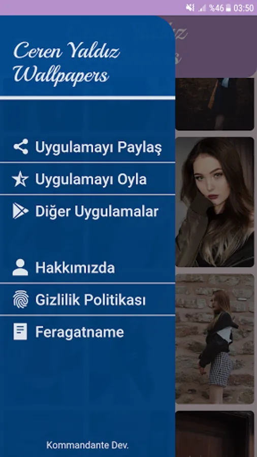 In our application where you can find the photos of Ceren Yaldız, you can make wallpaper, save and share them on your device.