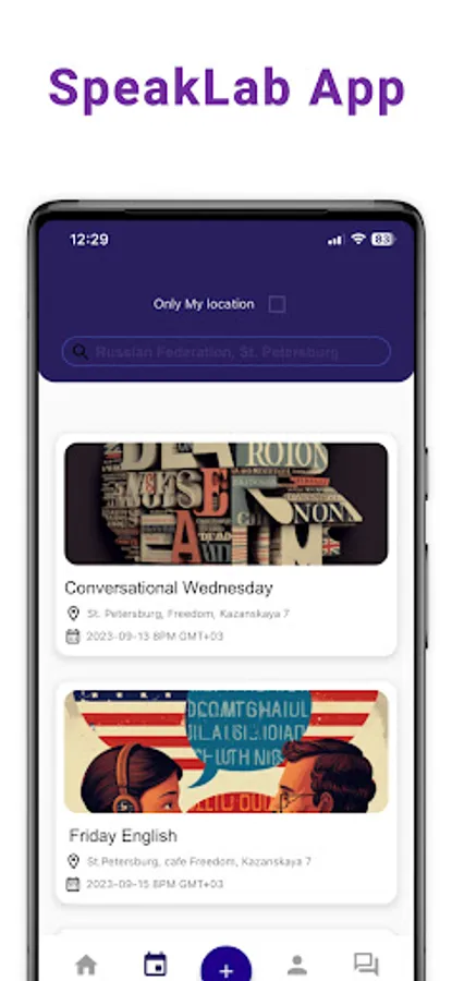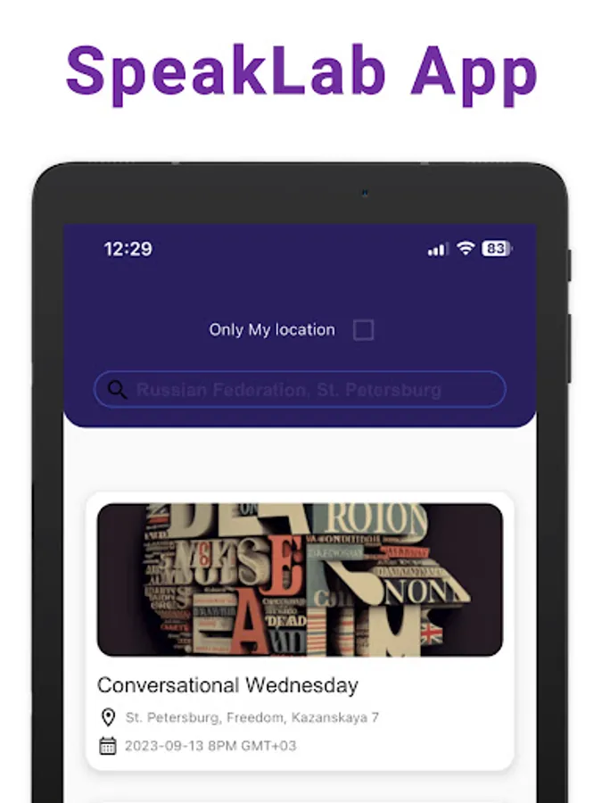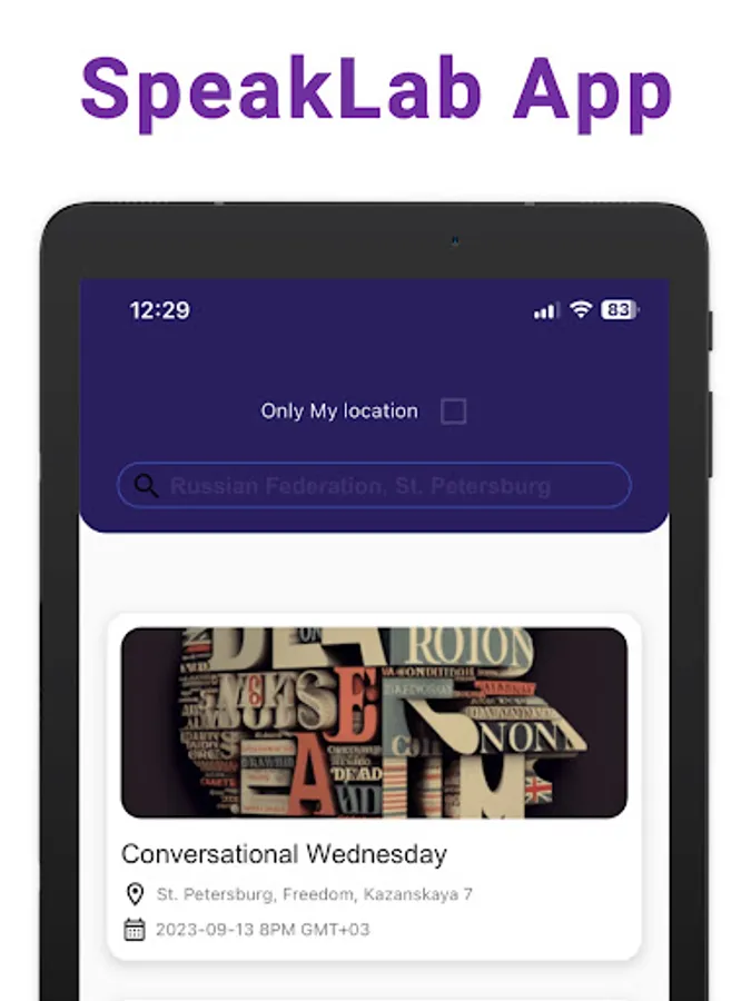 SpeakLab app - your ultimate guide to local events and communities. Meet new people, create your own communities, and discover the city from a different perspective.