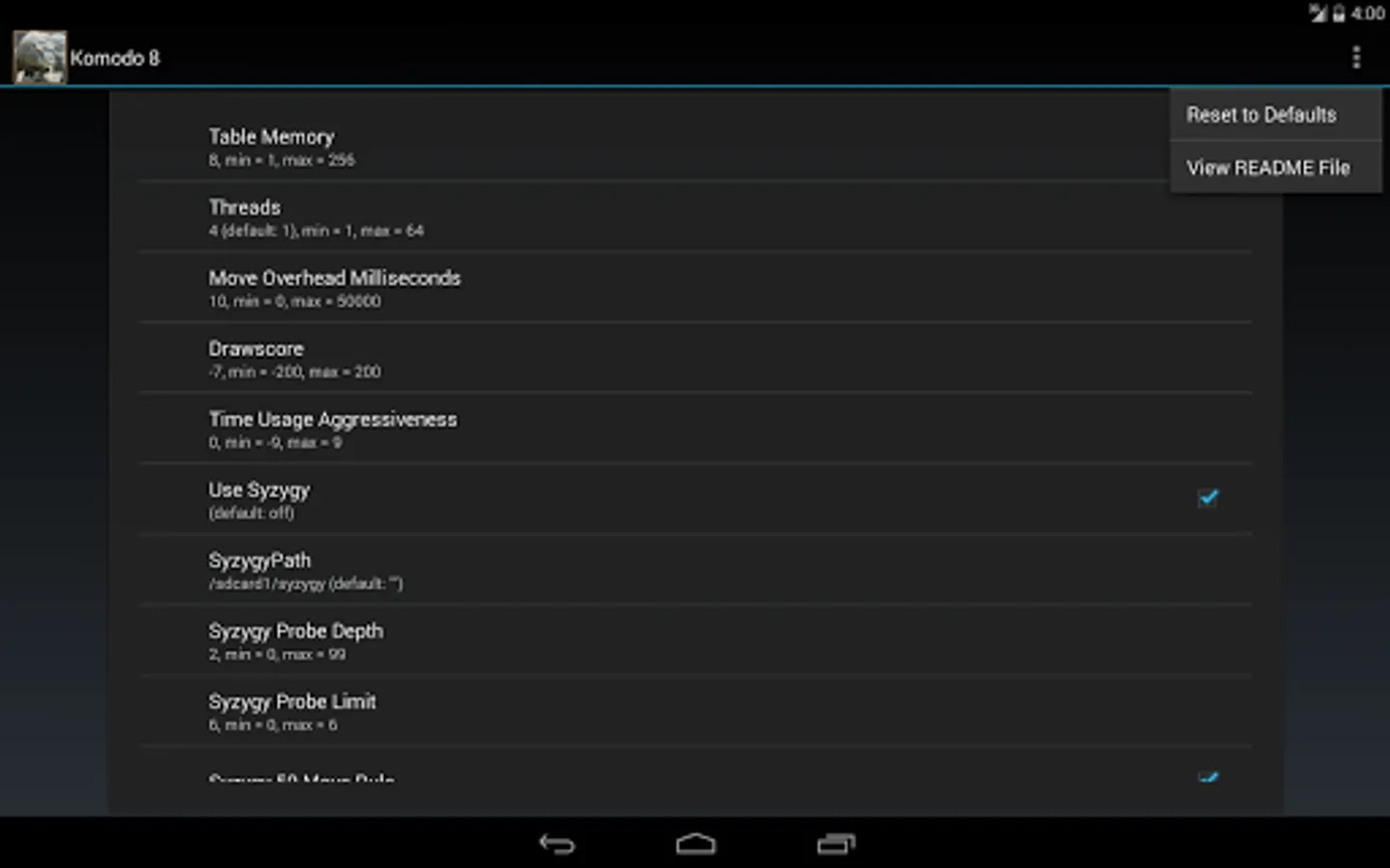 NOTE: Komodo 9 is now available from https://www.google.com/url?q=https://play.google.com/store/apps/details?id=com.komodochess.komodo9 . The price of Komodo 8 has been reduced to reflect this.