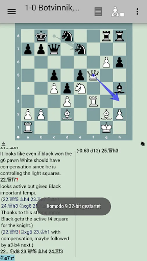 Komodo 9 is the latest release of this prize-winning chess engine. Komodo 9 is an improvement over all previous Komodo versions and supports multi-core processors (32- and 64-bit) and endgame tablebases.