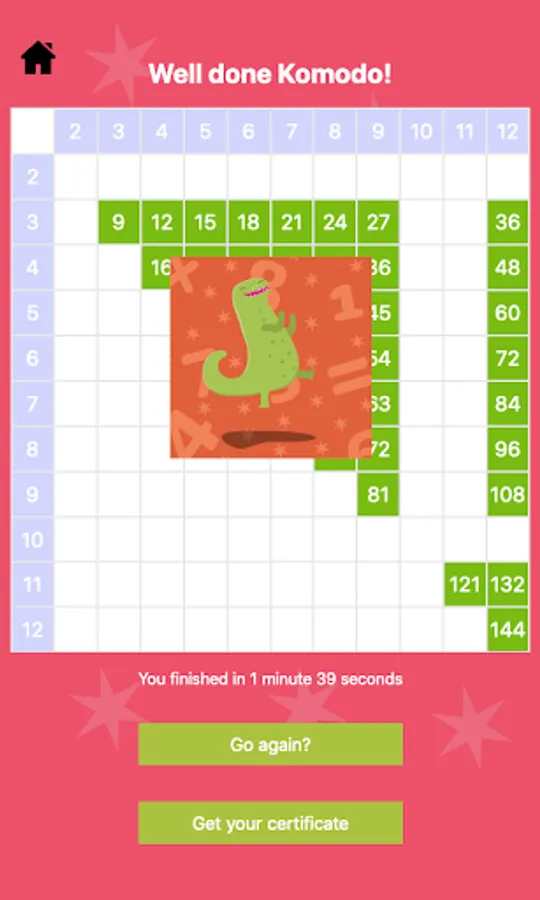 The challenge itself provides an interactive practice grid where the learner answers all the important 38 times tables while being timed. Once the challenge is complete there’s an optional feature to email a certificate and report with parental consent.