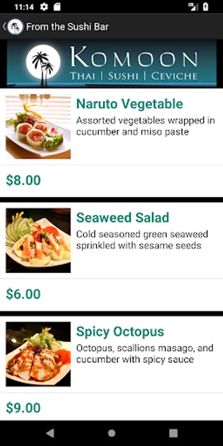 Komoon Menu App Screenshots