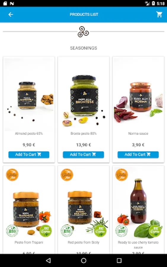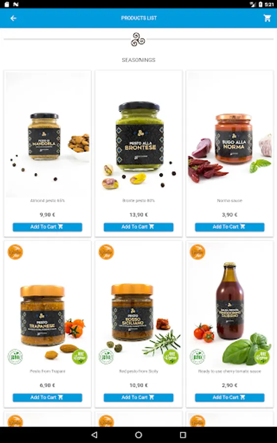 We have selected 60 products that best represent the culture of food in Sicily and the best known raw materials: from pistachio to cherry Pachino, from citrus fruit to almonds, from tuna to oil, from caponata to the most famous sauces.