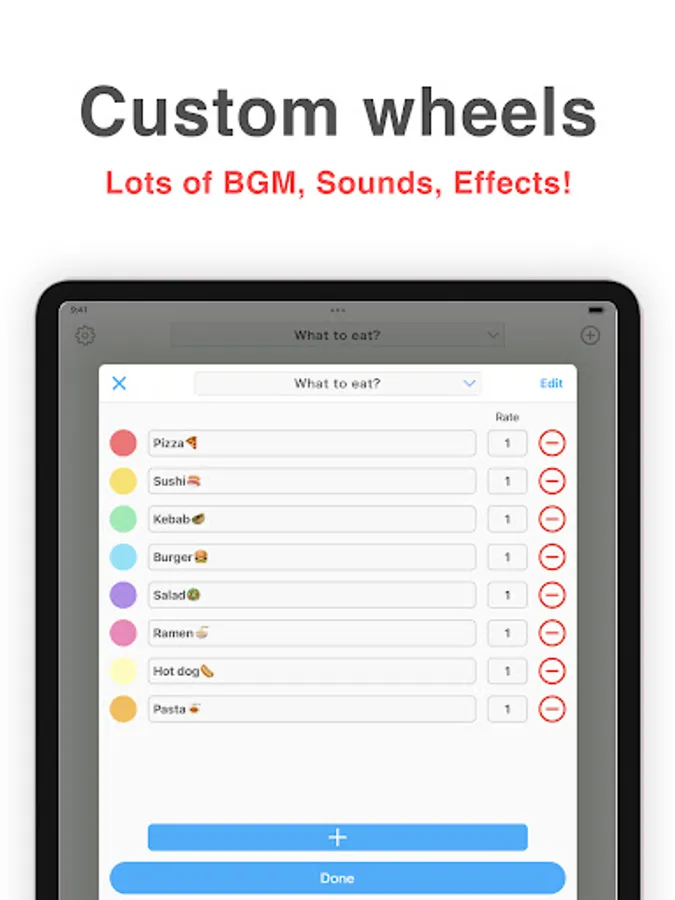 You can set your favorite sound effects and background music for each roulette. Don’t let random picker wheel go dull, music makes everything better!