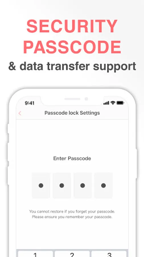 Your weight diary is completely secure. The data can be unlocked with the password. And it is completely free!