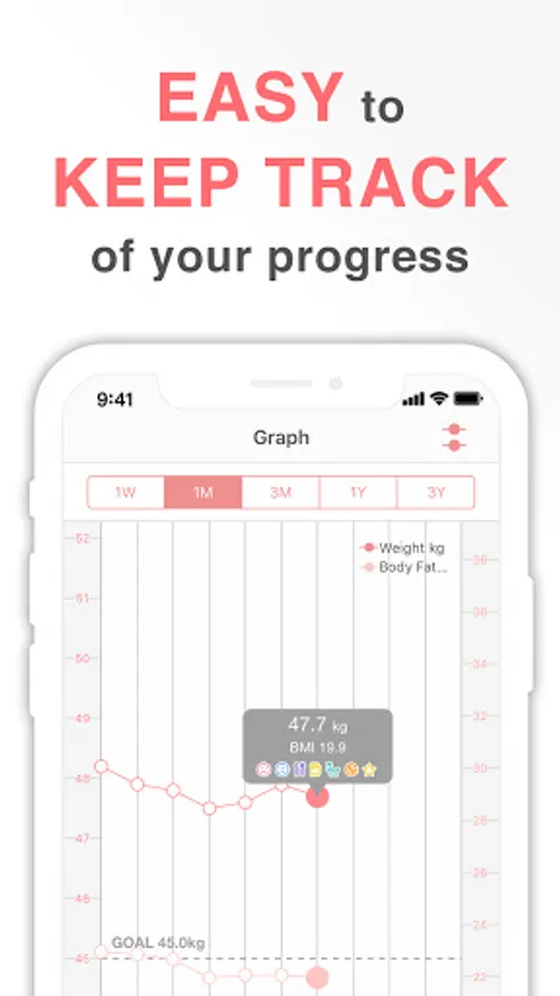 SmartDiet is a free weight tracker for men and women who want to lose weight, gain weight and stay healthy. In addition to kilograms, you can also monitor body measurements and keep track of your body mass via the bmi calculator and body fat percentage calculator.
