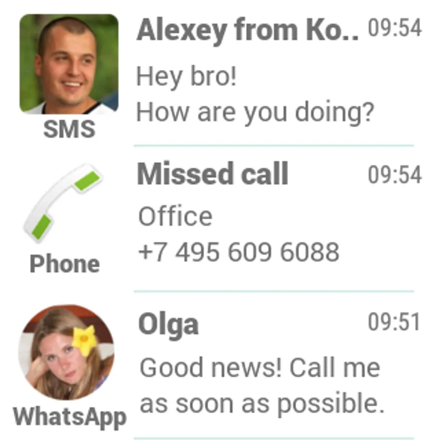 WhatsApp images, notification history, missed calls, instant replies, filters, vibration patterns.