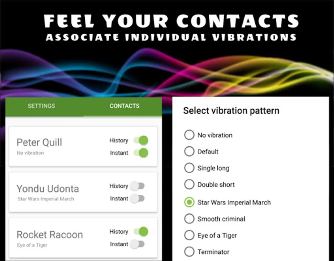 📳 Vibration patterns to feel contacts