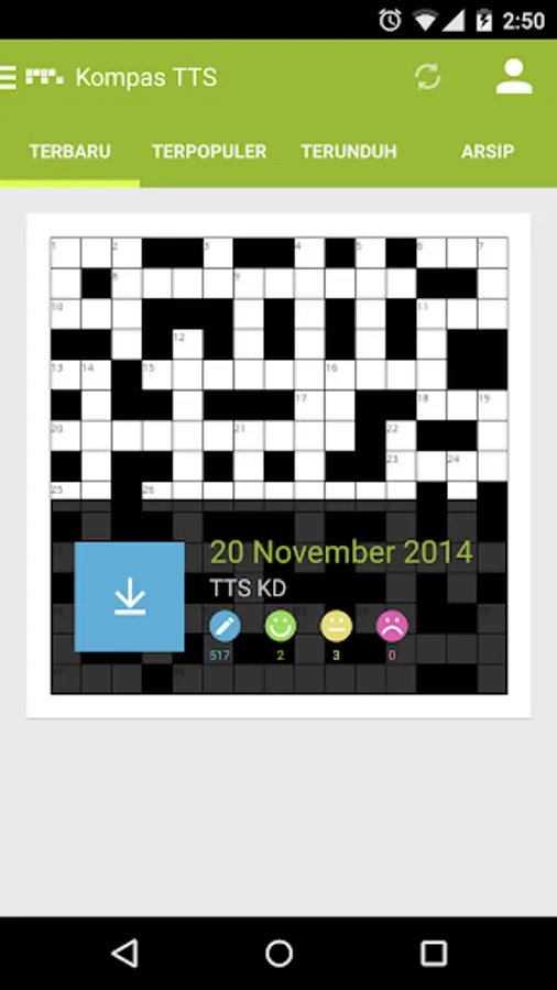 KOMPAS TTS (crossword) is official mobile game from KOMPAS Daily Newspaper. It was designed to give you the exact same exciting experience as the printed version. This game provides you free and paid edition of crossword that comes “with social media assistance” feature. You can even put your name in record as the fastest person to complete the crossword.