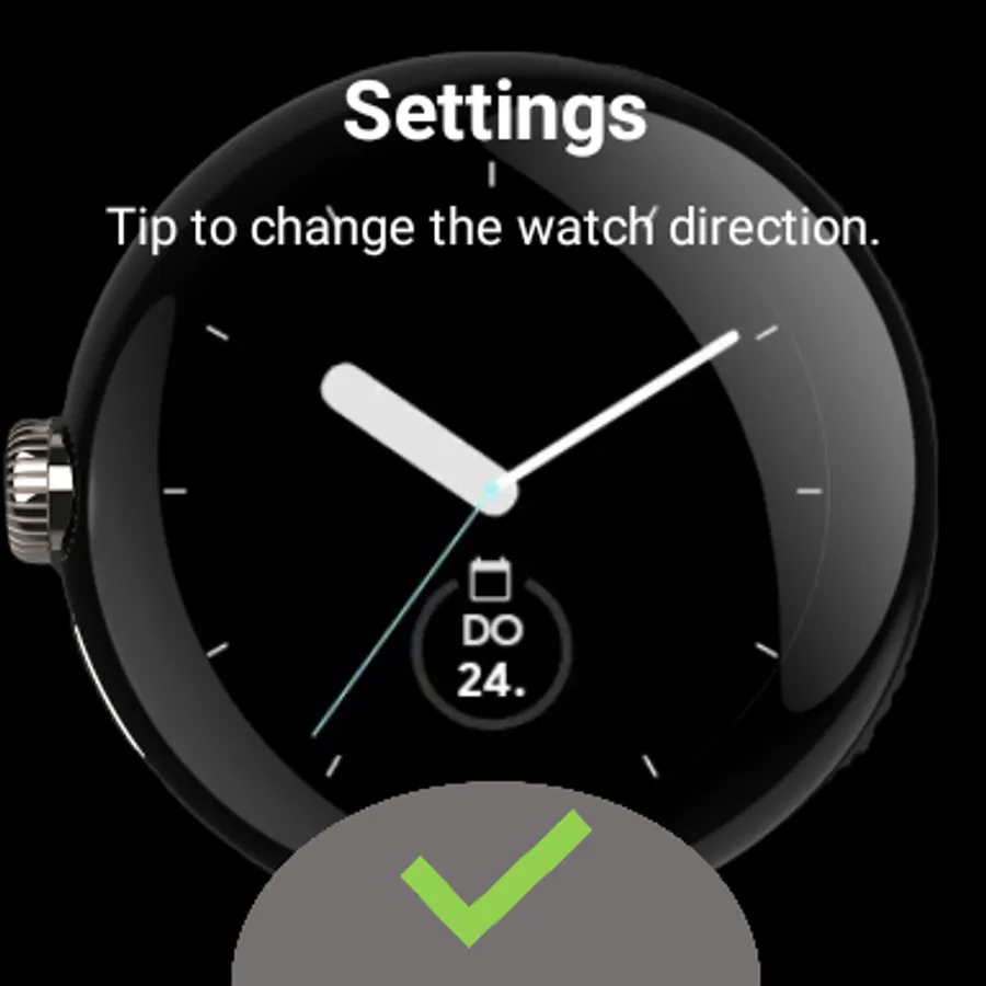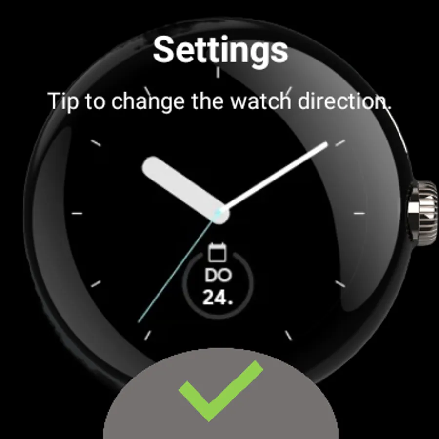The settings can be used to determine in which direction the crown of the smartwatch points to enable right-handed and left-handed use.