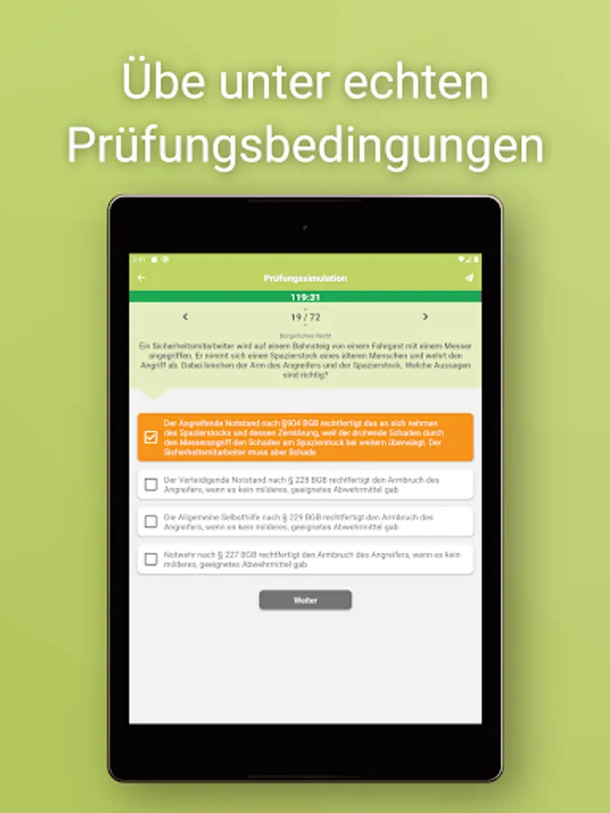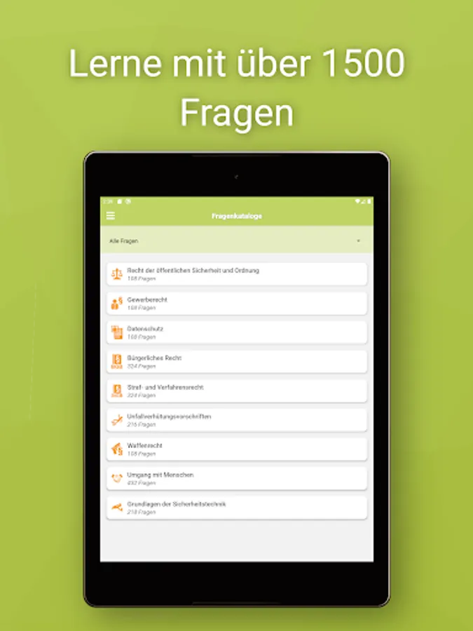 This learning app is suitable as a companion to the preparation for the proficiency test according to §34a (IHK proficiency test) and as a supplement to the professional training for service staff for protection and security, specialist for protection and security and the further training for certified protection and security staff (gSSK).