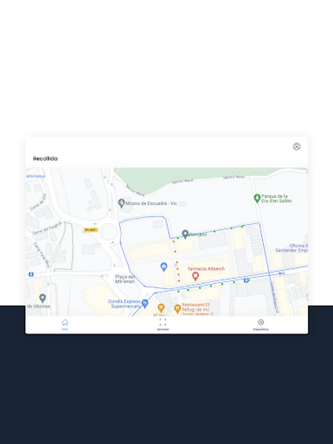 The Komtainer Truck APP has been created and designed to perform the automatic reading of door-to-door container collection. The application allows you to geolocate and view the route that is being done and what the readings are.
