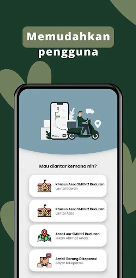 8) Order delivery on the spot or order pick up directly at the Student Work Cooperative of SMKN 2 Buduran