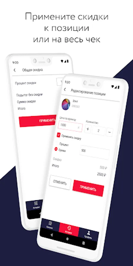 At the time of the sale of goods or the provision of services, you must sequentially select a position, indicate the cost, apply a discount and break through the check.