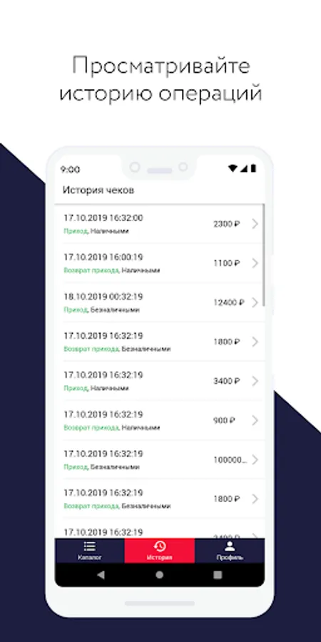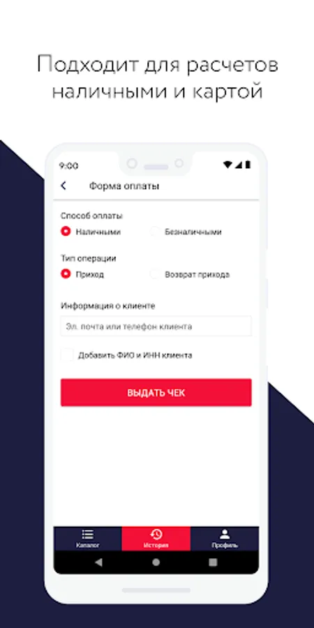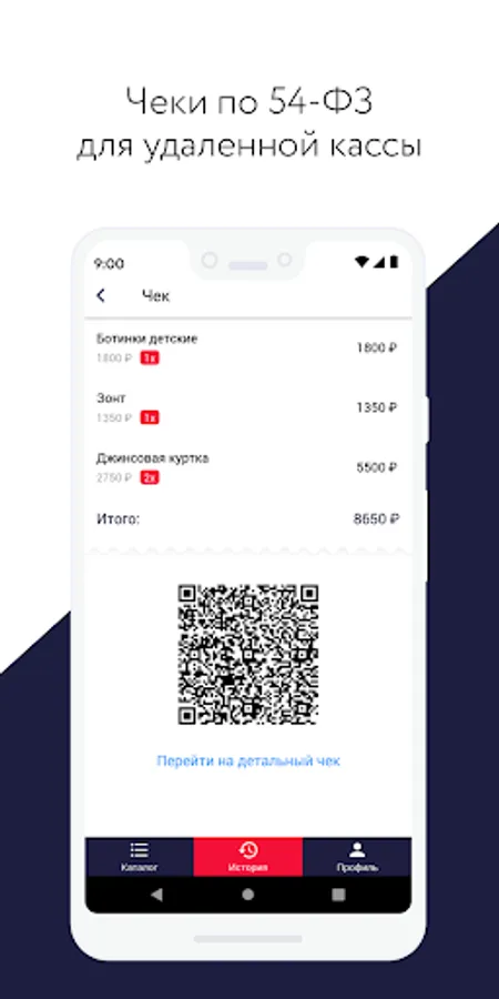 The application allows you to generate online checks for 54-FZ when visiting the sale of goods and the provision of services. Checks are written to the fiscal drive of the online cash desk installed in your office (point of sale) or to the online cloud cash desk. There may be many field employees, but one cash desk.
