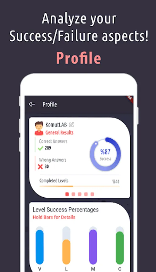 📈 Profile tab with analysis that can give you an idea of which areas you should be more successful and which areas you should develop yourself more