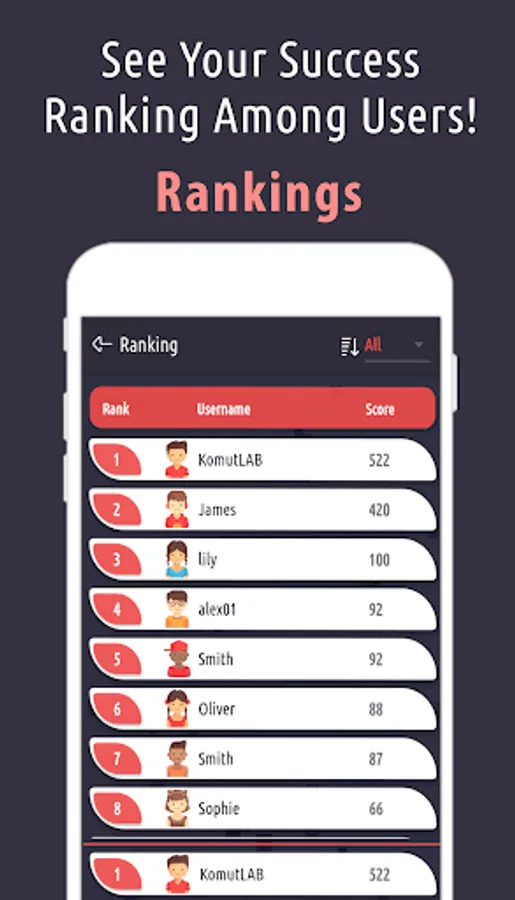 🥇 🥈 🥉 The ability to view your ranking of success among real people using the application