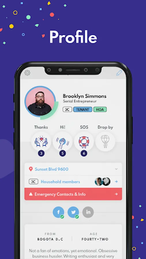 Meet your neighbors. Share information about you and your interests, thank them, post an SOS, or ask to drop by.