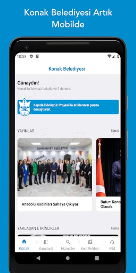 You can pay your tax debts through Konak Municipality mobile application, you can be informed about our activities and activities, you can access the city guide. You can also reach the pharmacies on duty within the borders of Konak district.