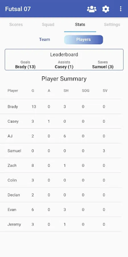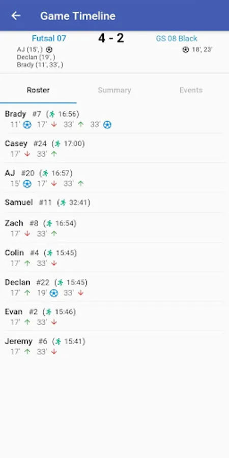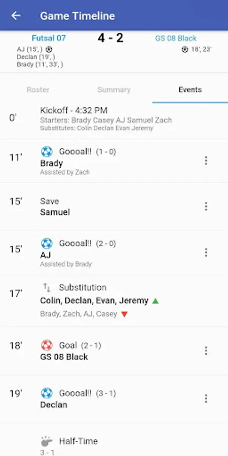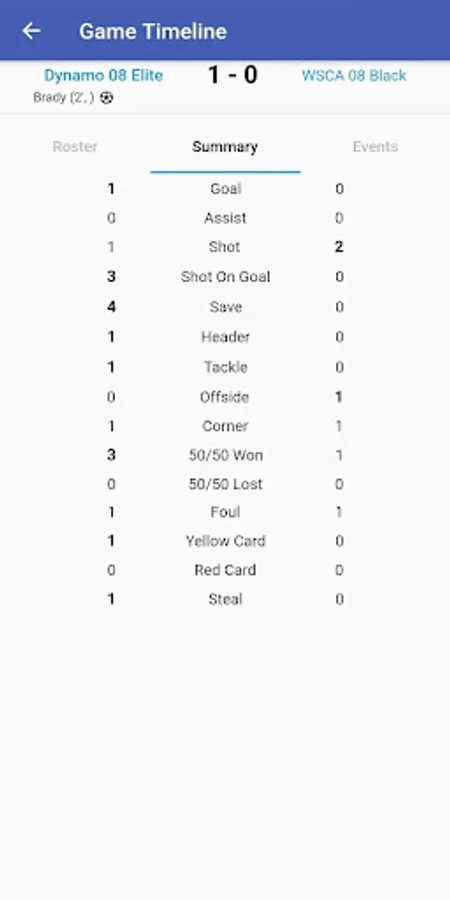 - GAME EVENTS / STATS: Configure which player/team stats you would like to track including: goal, assist, shot, shot on goal, save, tackle, offside, yellow card and more. See game summary and game event list for game level event details.