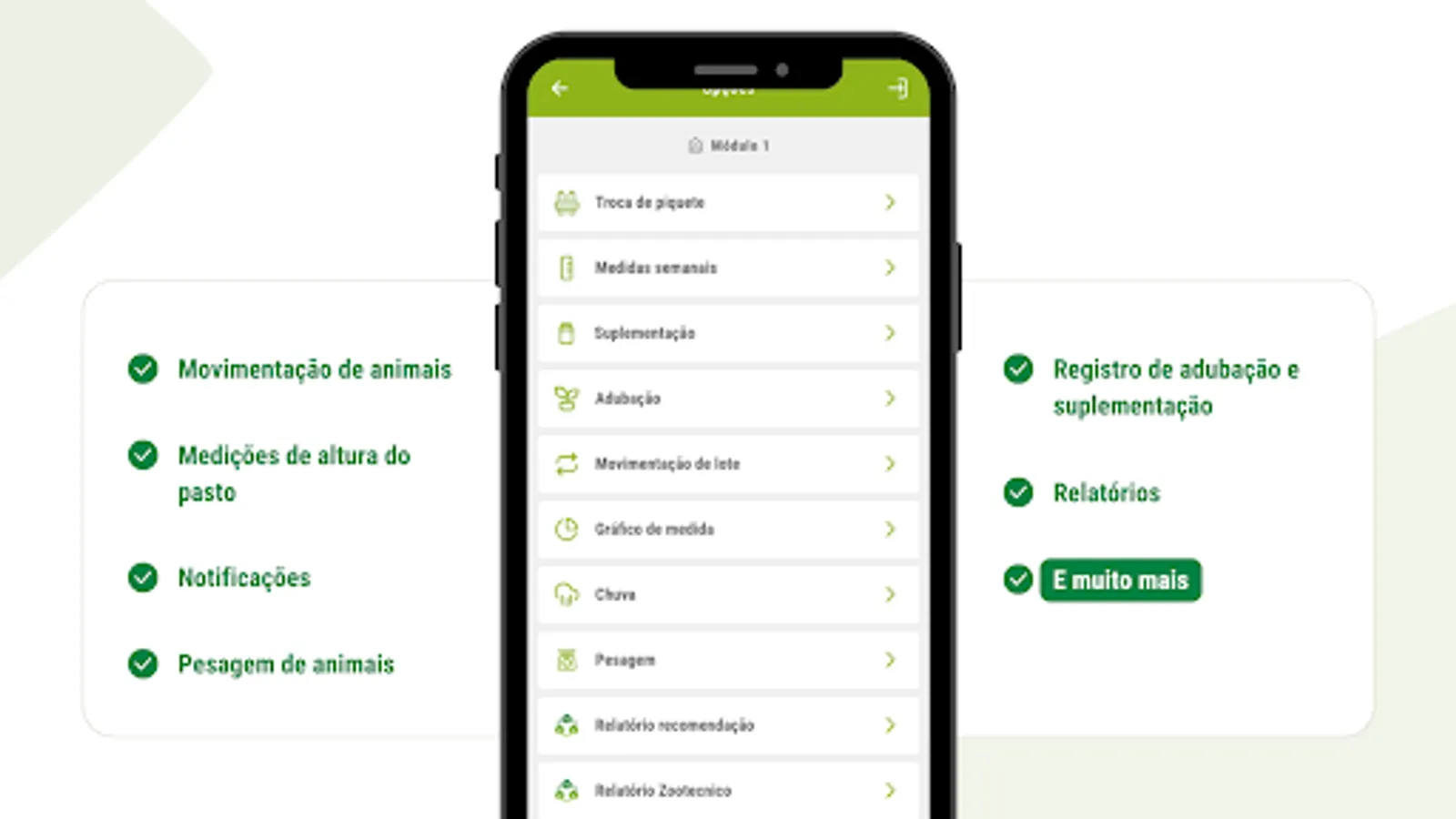 KonectPasto uses scientific data and mathematical equations to ensure that management height goals are achieved, offering efficient solutions with low human intervention for decision making, ensuring greater farm profit with remote management of the main activities of the pasture production, in addition to maximizing the time and quality of services provided by technical consultants.