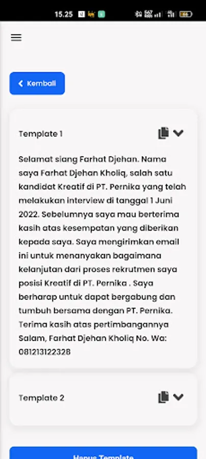 Now there is a simple solution! This HRD chat template application helps applicants to ask about the need for follow-up job applications, ask for feedback on applications sent, and others with courtesy, you know!.