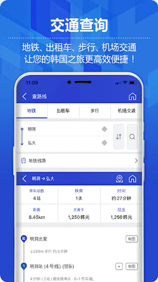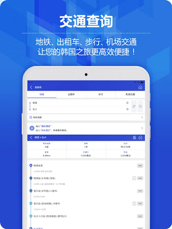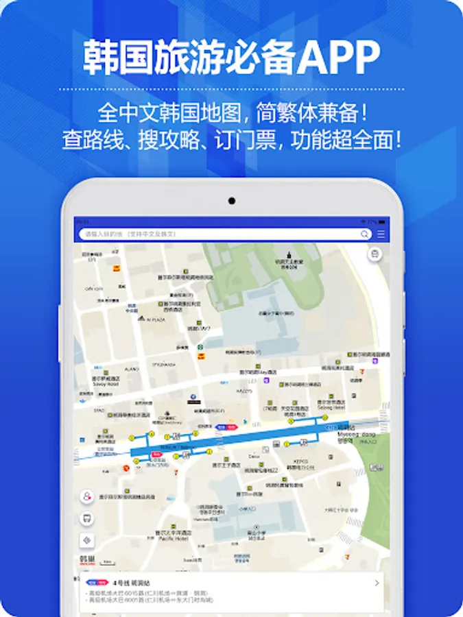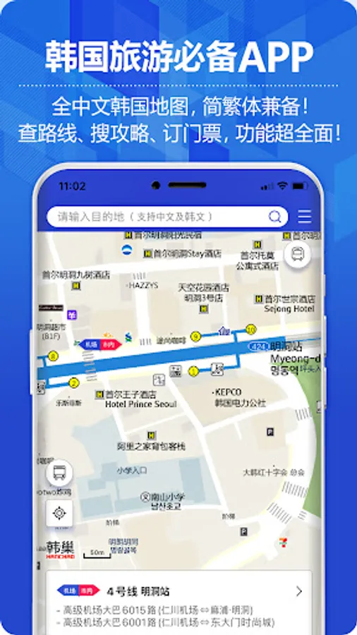 - Accurate navigation for you, providing traffic information such as subway, taxi, walking route search and airport bus