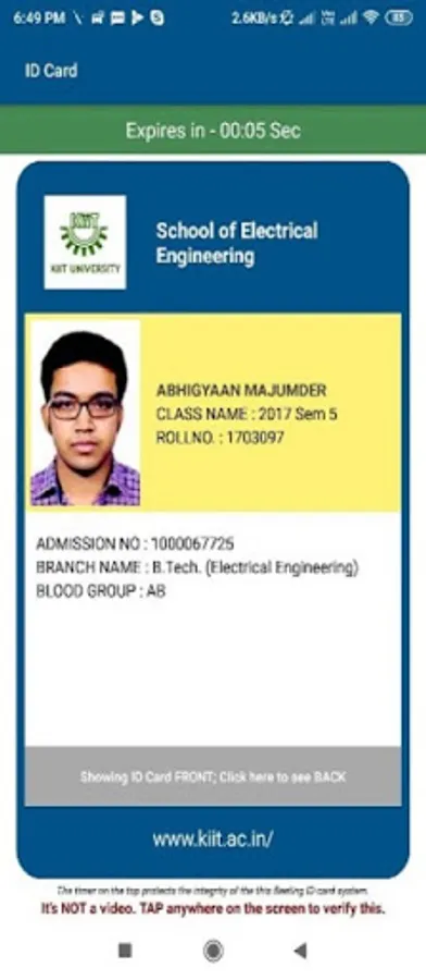 One of the principal functionalities of Krusaders app is its incorruptible & highly secure E-identity card for the students (a substitute for physical Identity card) on the digital platform. Students have the power to generate their E-ID cards after