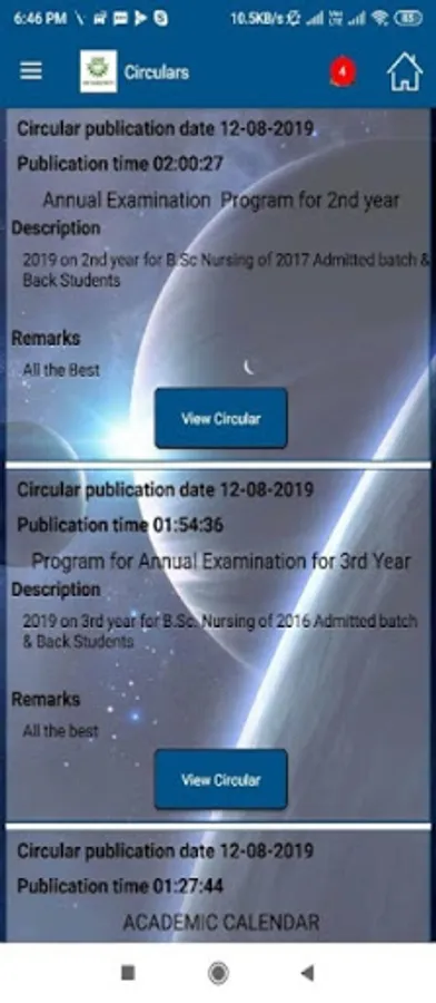 modules like E-Identity Card, Circulars, Notification, Gallery & Profile.